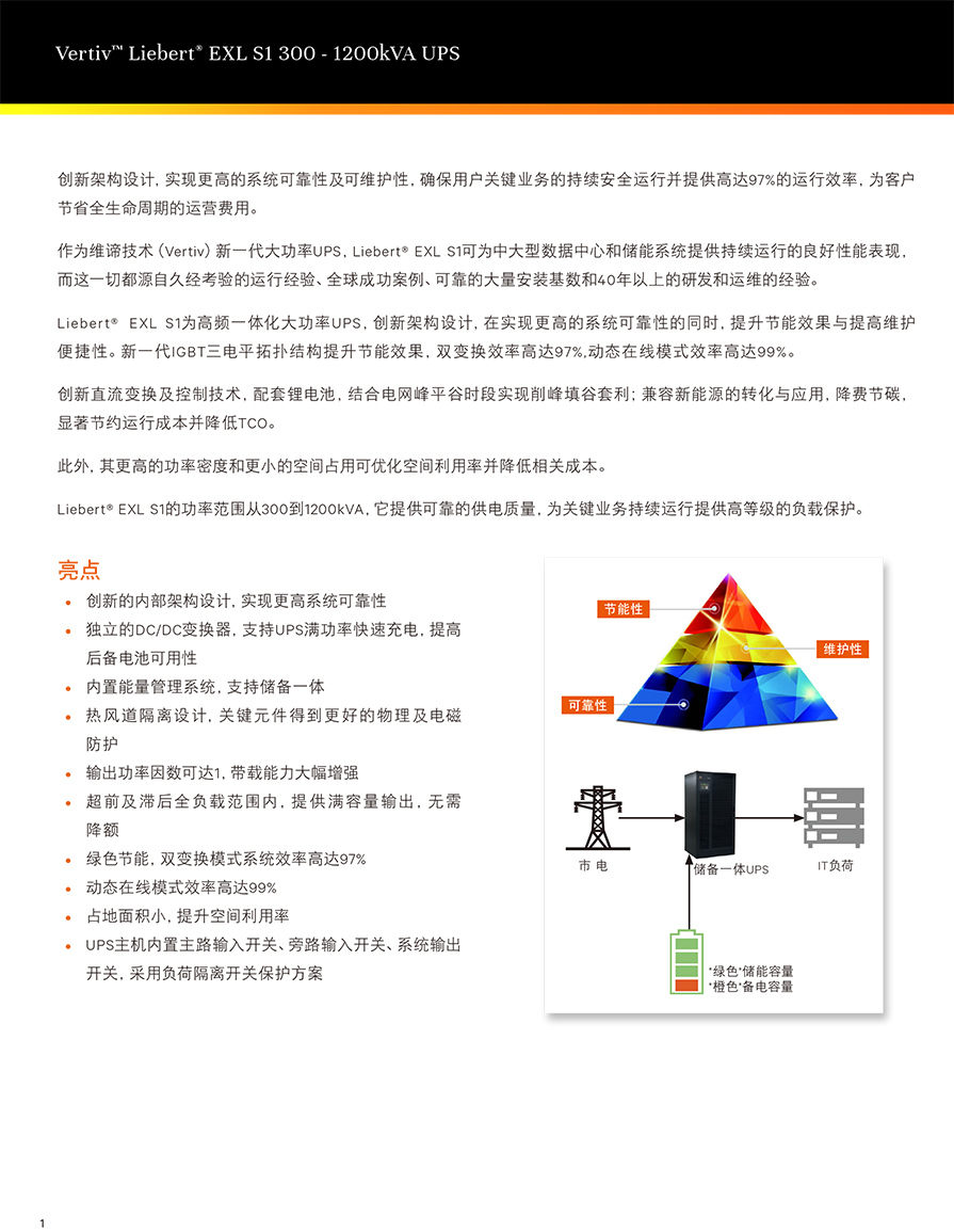 Liebert® EXL S1 300-1200kVA 储备一体UPS解决方案